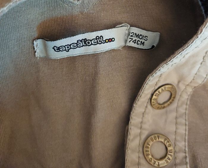 Salopette 12 mois, tape à l'oeil Doublé intérieur coton Fermeture pression 2 positions Marron clair Boutons pressions également à l'entre jambe 2€