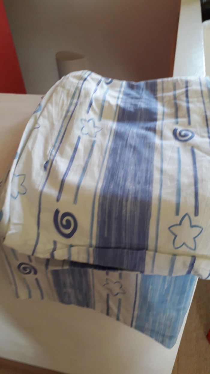 Parure de lit 1 personne drap housse housse de couette et taie oreiller couleur blanc et bleu motifs étoile de mer et coquillage