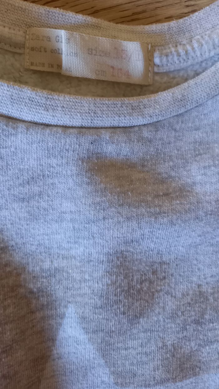 Sweat fille gris clair chiné avec motif étoile et empiècement beige légèrement brillant dos uni.