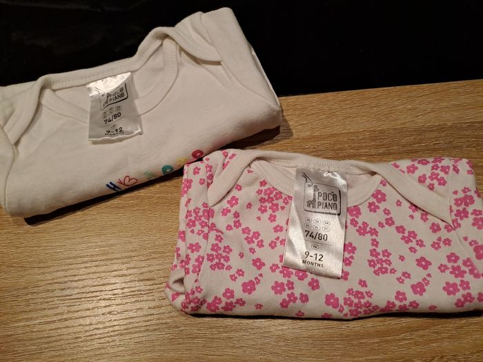 Lot 2 bodis manche courte Taille 9 - 12 mois Marque poco piano En très bon état Jamais porté