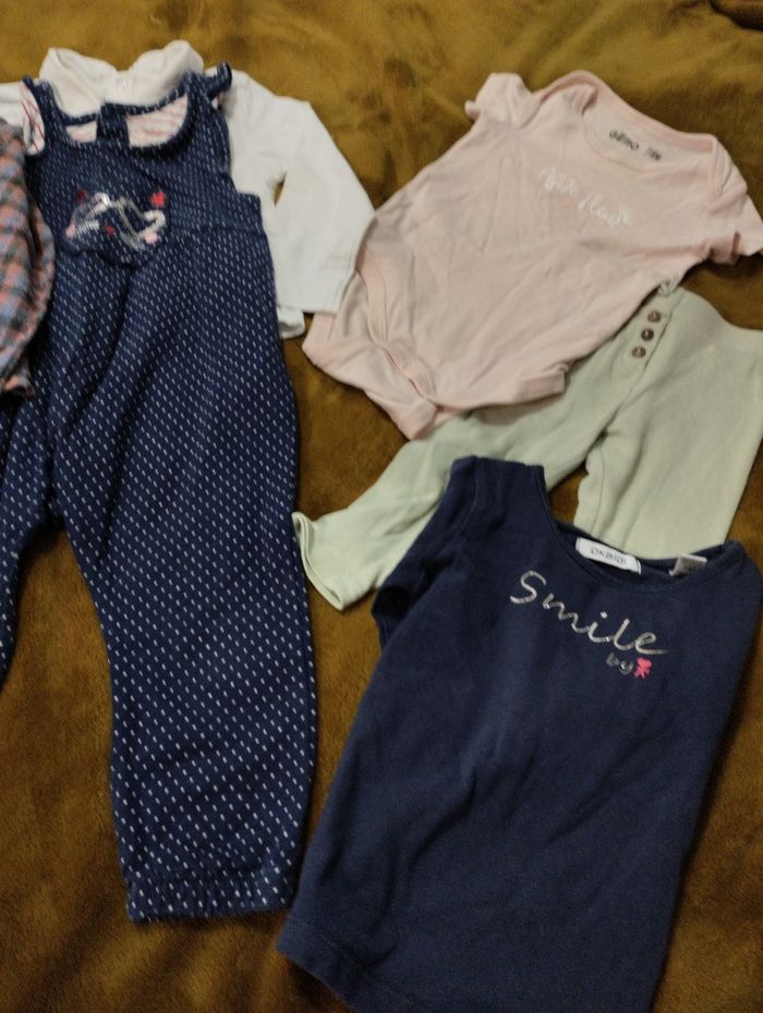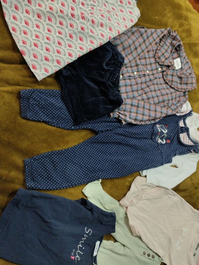 Lot 18/24 mois fille comprenant 1 bodies 18 mois 2 tee-shirts longues manches 18 mois 1 legging 18 mois 1 chemise 2 ans 1 short hiver 2 ans 1 combinaison 2 ans 1 robe 2 ans