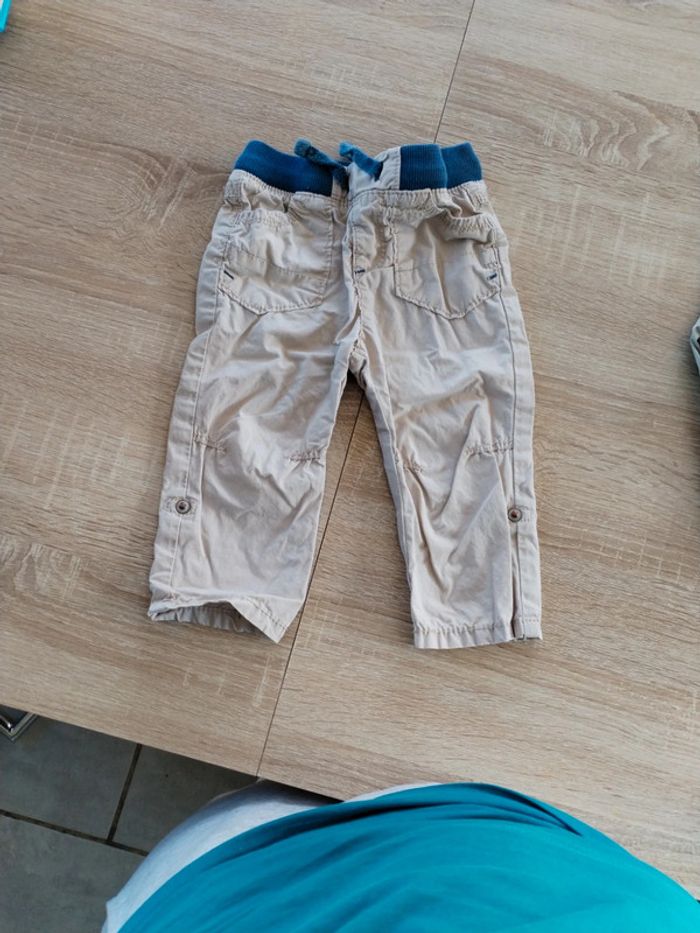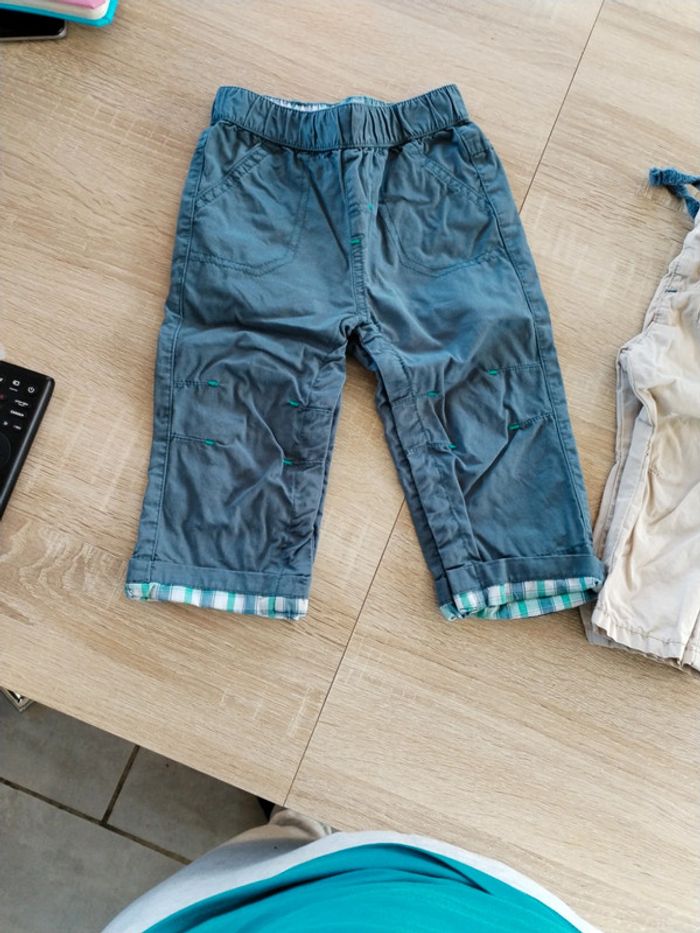 3 pantalons toiles 12 mois. Ouverture aux entre jambes pour le 1er. Différentes marques. D'autres vêtements 12 mois ici: #12moismaariiee76