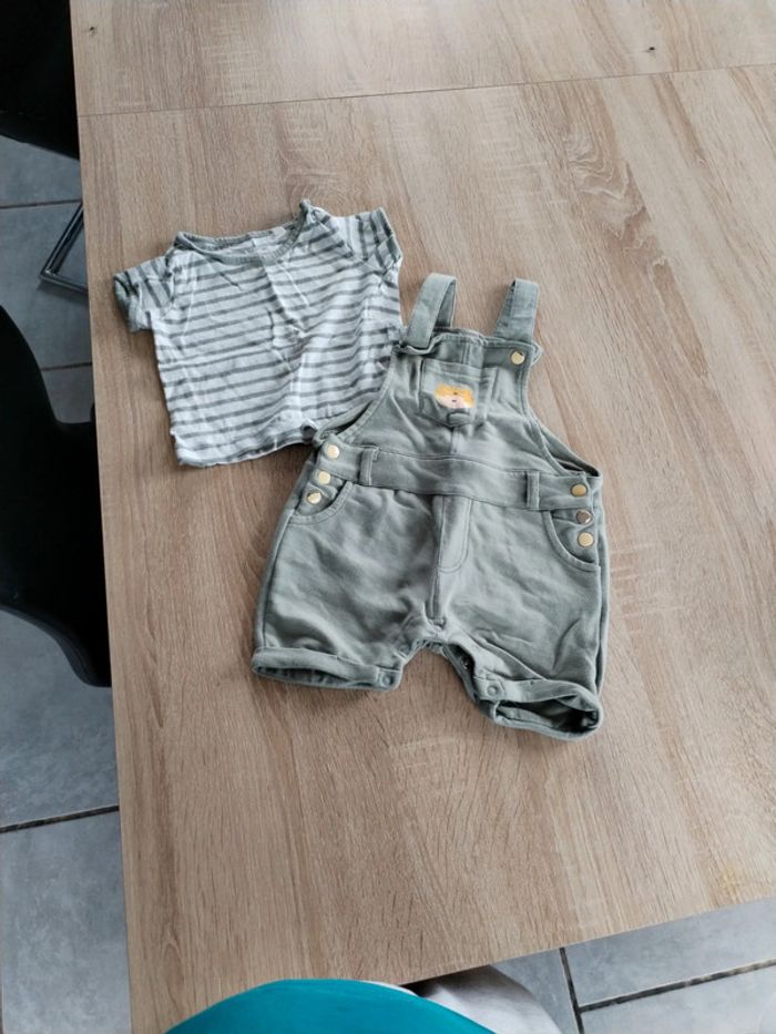 Salopette 12 mois été (short) avec tee shirt. Très bon état a part les pressions qui commence à perdre leur "peinture" D'autres vêtements 12 mois ici: #12moismaariiee76