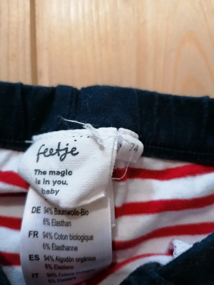 Petit pantalon style jegging très confortable, très peu porté. Détail froufrou à la ceinture et aux poches. Seul défaut dernière photo, s'est collé à un scratch en machine.. Feetje 9mois 74 #hanna9889fille9mois