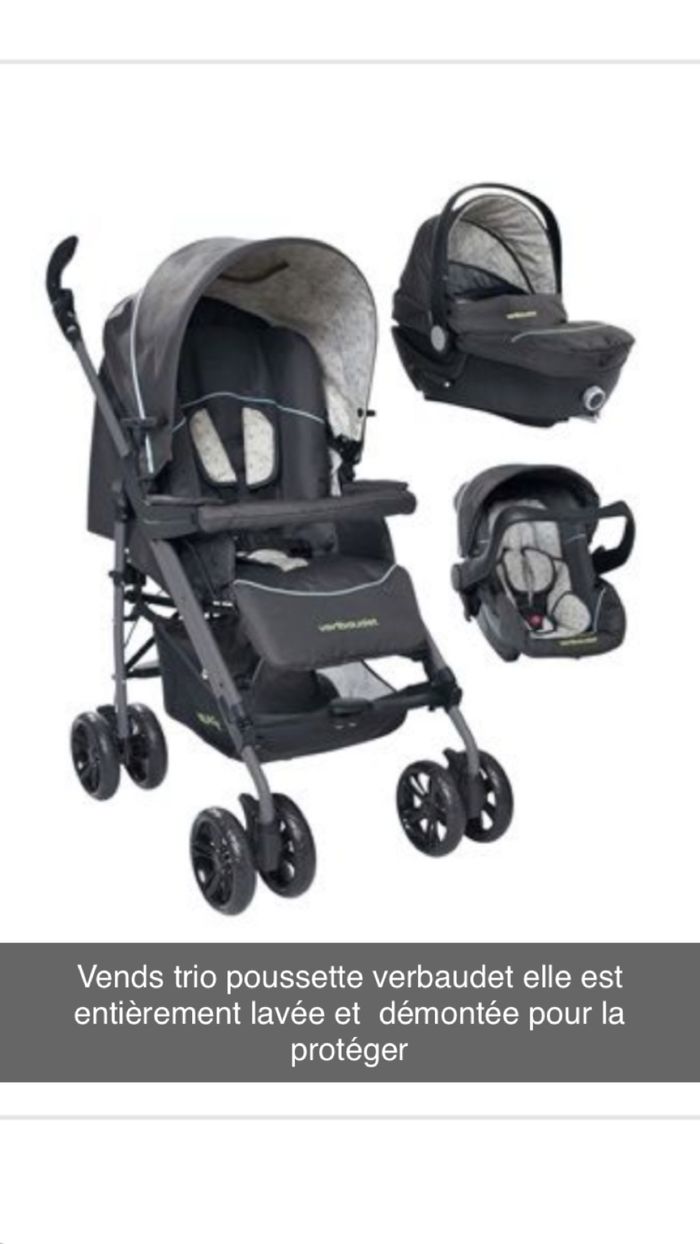 Trio verbaudet démontée lavée à venir voir sur place Bon état juste un mini trou à un endroit sur une des capotes