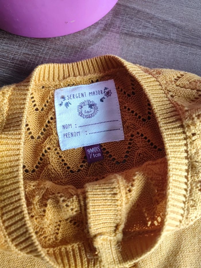 Gilet Joli jaune moutarde A boutons Marque Sergent Major Taille 9 mois (peut convenir jusqu'à 12/15mois) Très peu porté, état neuf! #cyboulette44fille9mois