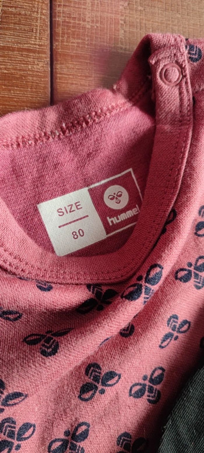 Lot de 2 bodies Manches longues Un rose avec motifs marque Hummel 80cms Authentique Un noir uni, marque Hema 74/80cms Très bon état #cyboulette44fille18mois