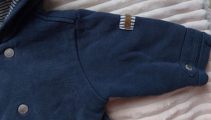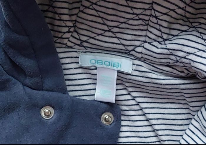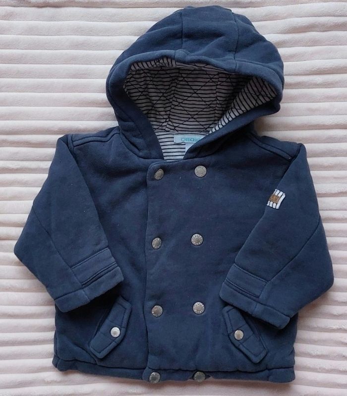 Manteau à capuche 12 mois, obaïbi Doublé intérieur Coton et polyester, bleu marine/blanc Fermeture à boutons pressions 3€