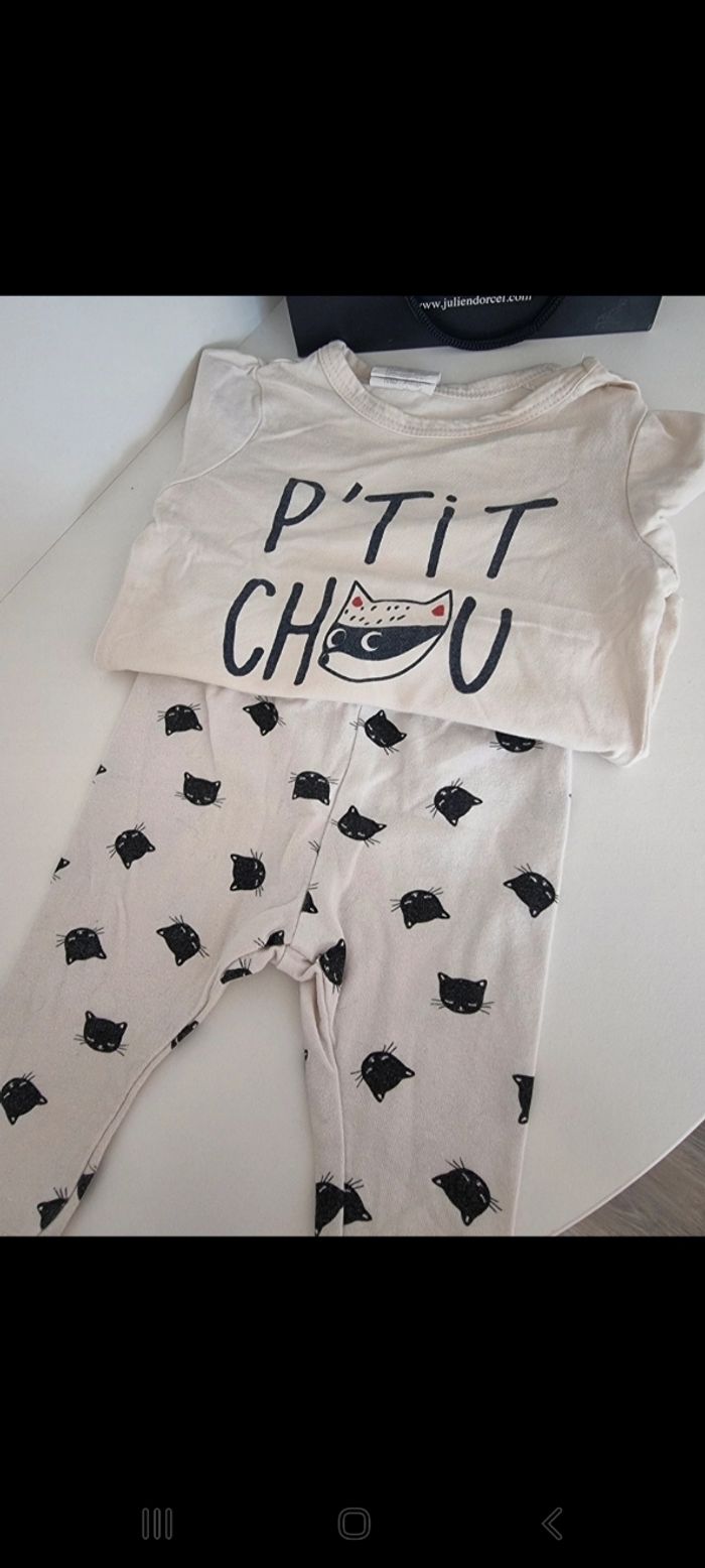 Ensemble motif chat đŸ± Leggings + T-shirt manche longue Taille 3 mois Marque kiabi