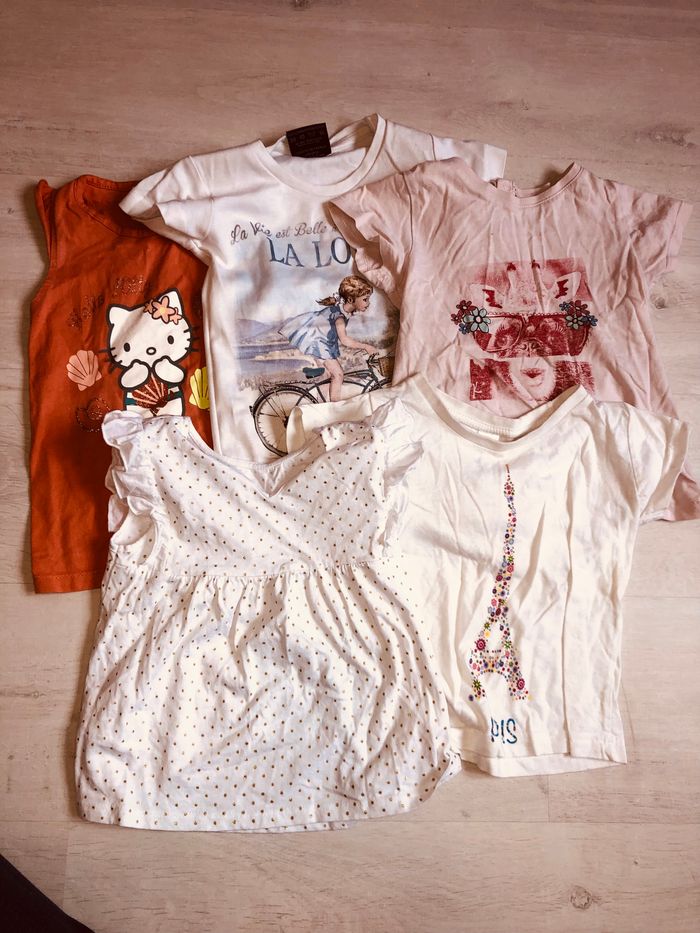 vend lots de 5 shirts de différents coloris orange rose blanc taille 24 mois