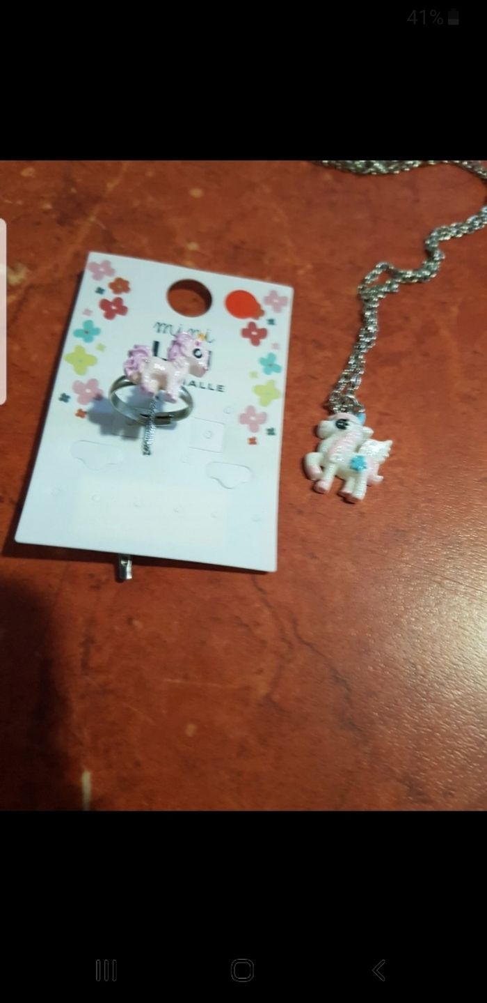 Ensemble comprenant une bague et un collier licorne. Neuf