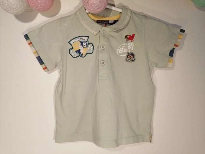 Polo à manches courtes vert d'eau avec patchs brodés "l'équipe des bricoleurs" N'hésitez pas à parcourir mon dressing pour d'autres pièces pour bébé et pensez aux lots