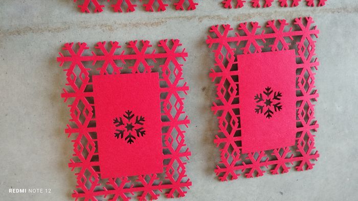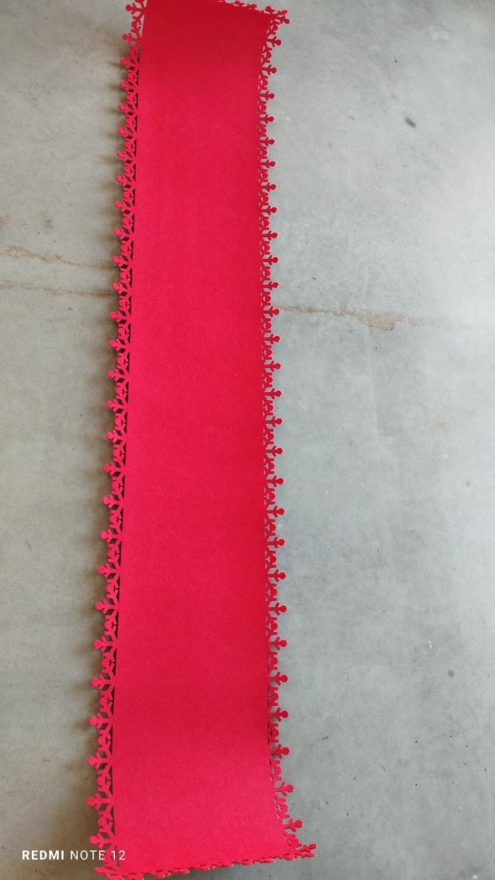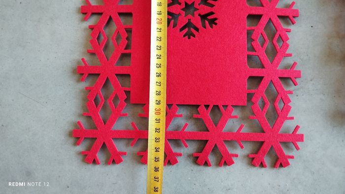 Kit complet de décoration de table de Noël comprenant un chemin de table de 178 cm sur 34 cm avec 6 sets à verres et 4 sets de tables.les dimensions sont sur les photos. Feutrine rouge épaisse.