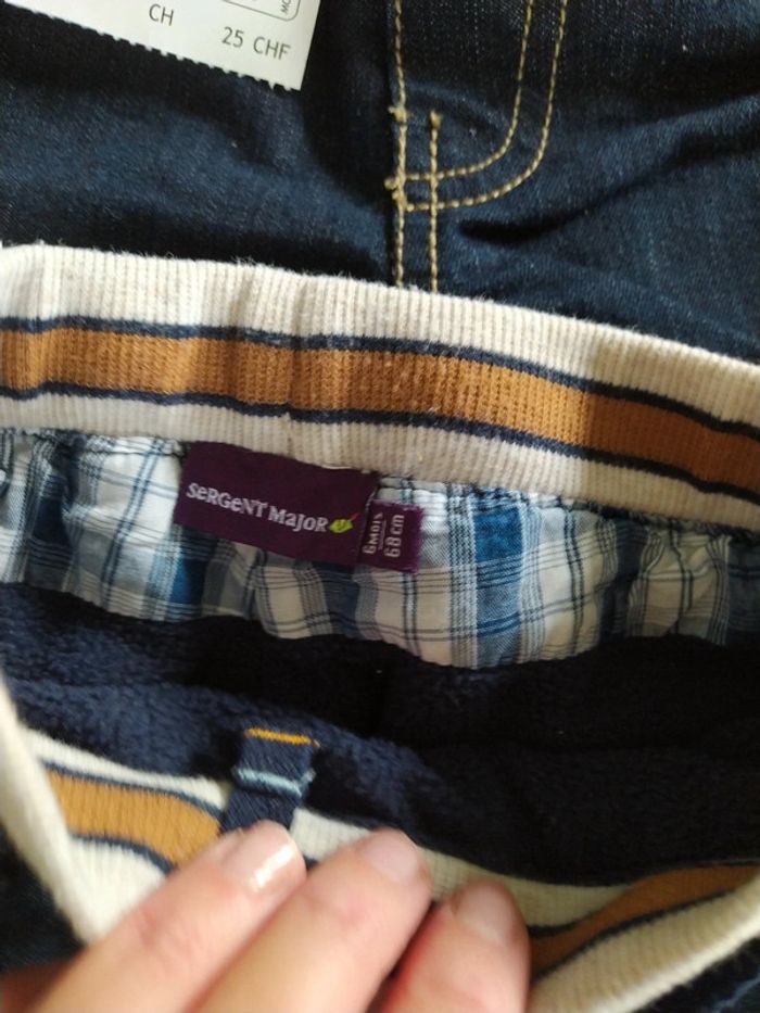 2 jeans bleus garçon 6 mois dont un neuf Marque sergent major et kimbaloo