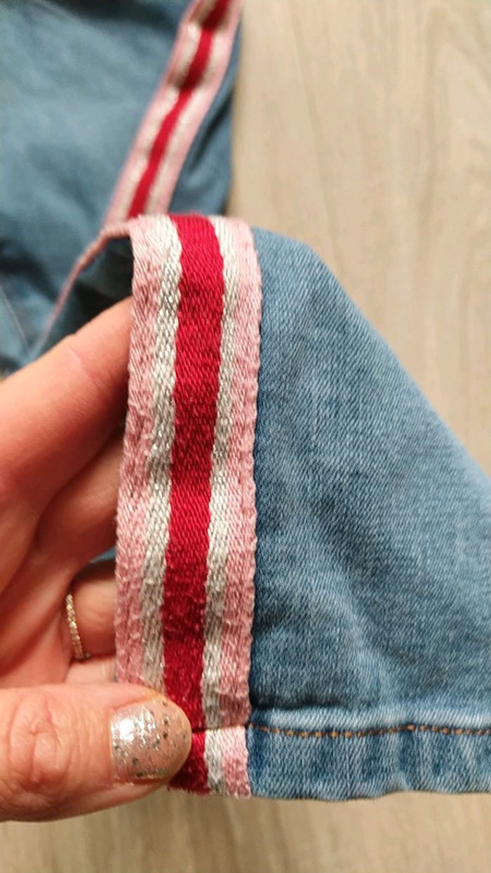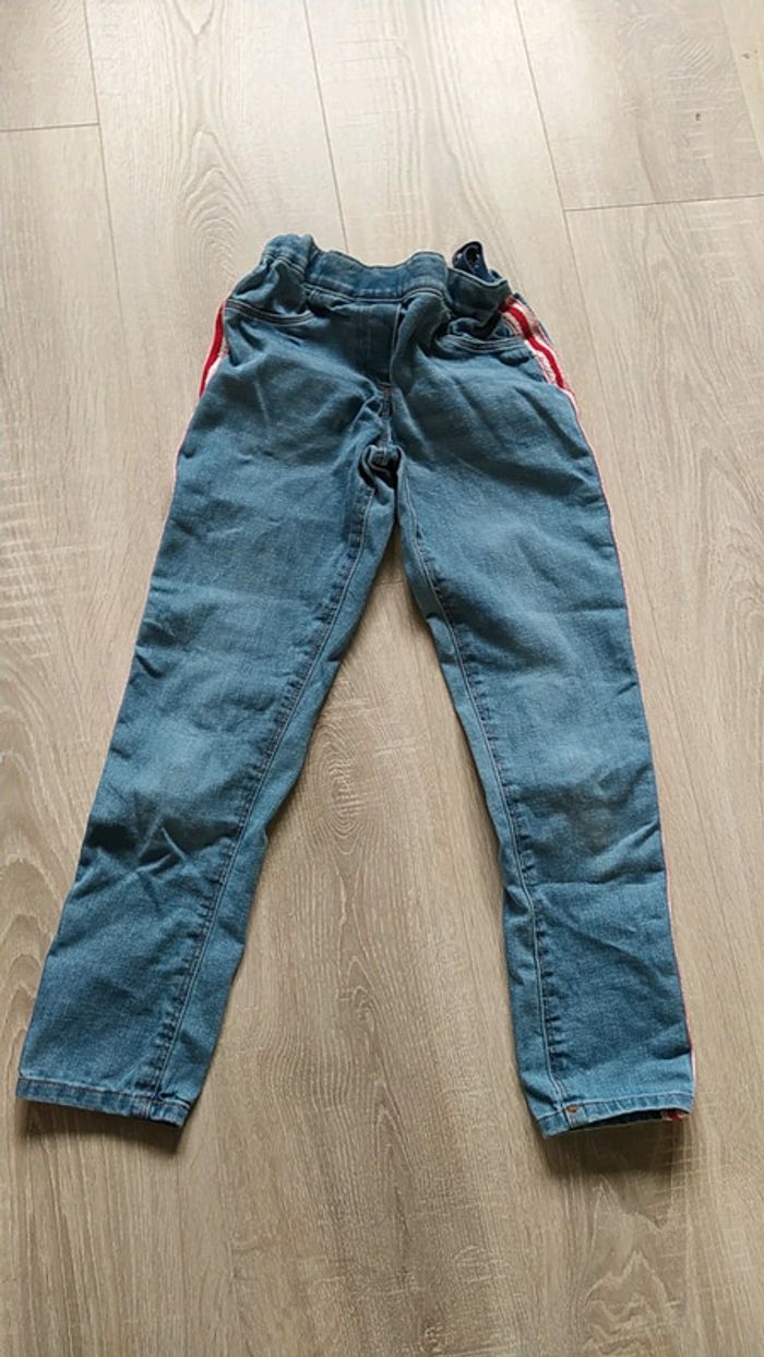Jean bleu vertbaudet Bande colorée irisée sur le côté Taille 8 ans Très bn etat