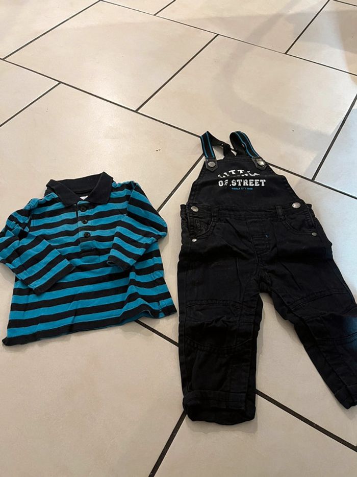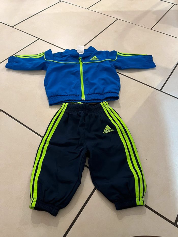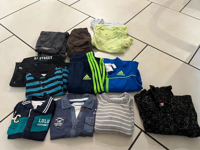 Lot comprenant 4 pull dont 2 épais 1 ensemble salopette pull 1 survêtement adidas 2 pantalon 3 body manche courte