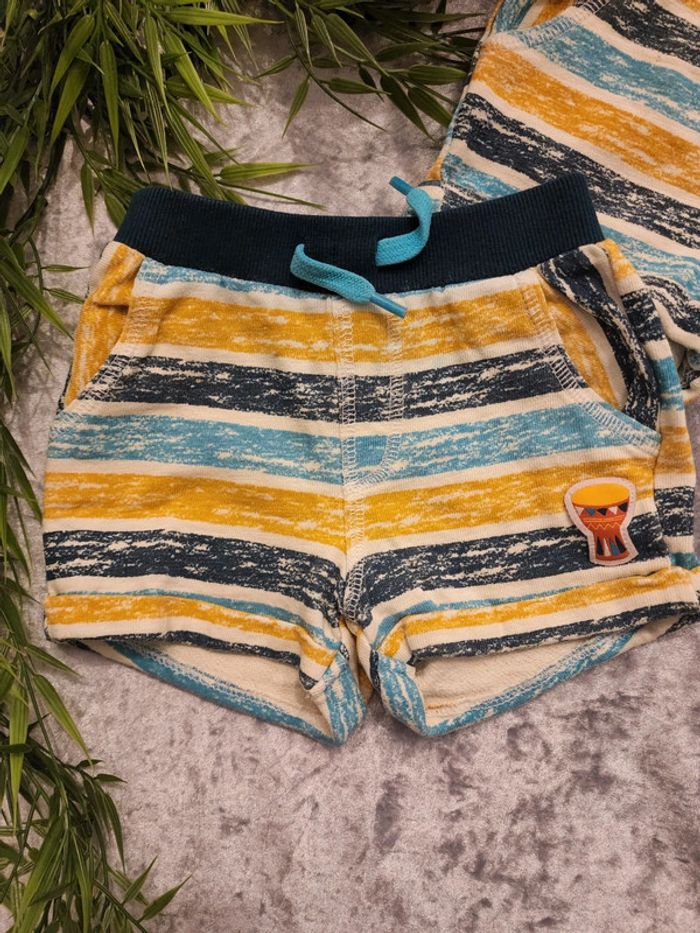 Shorts jumeaux 9mois Du pareil au même DPAM jaune et bleu