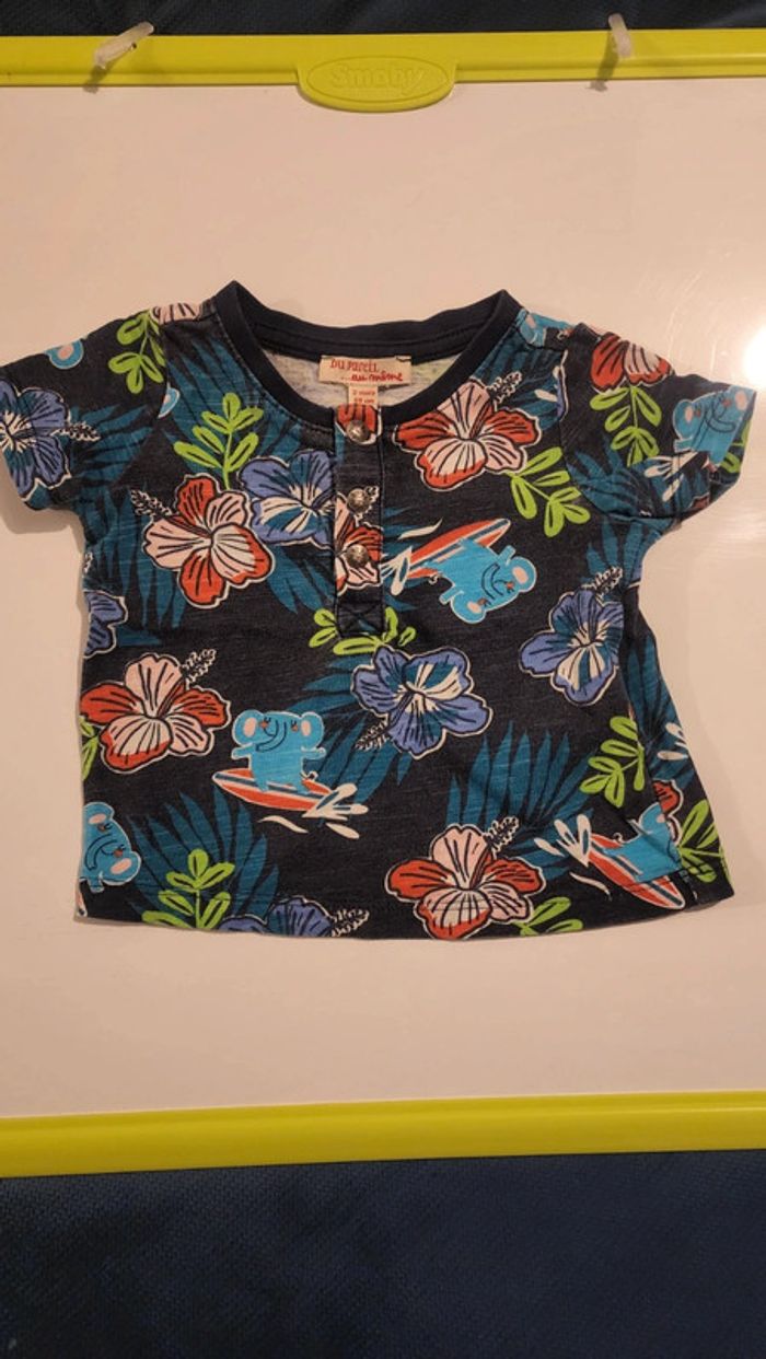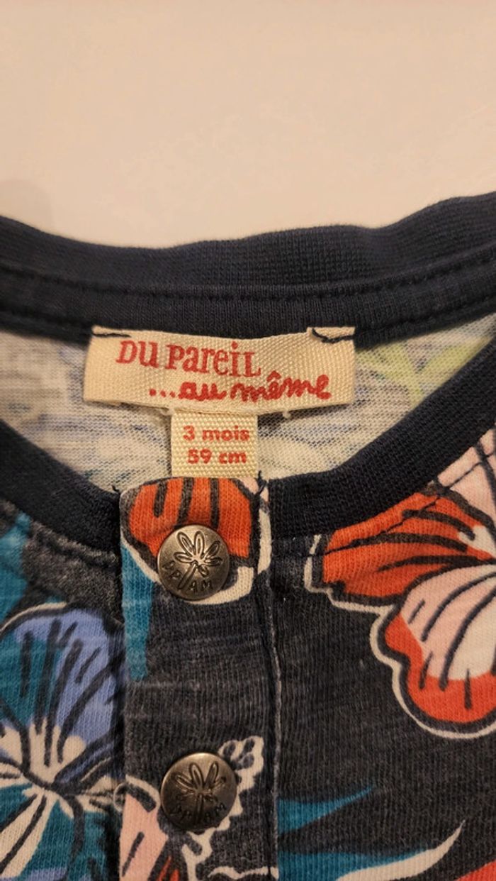 Tee-shirts mc jumeaux fleurs Hawaï 3mois Du pareil au même DPAM