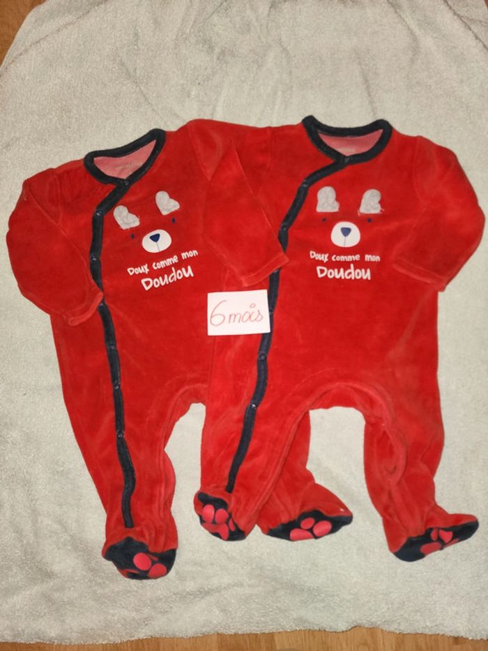 Pyjamas 6mois jumeaux Les pieds commencent à s'abîmer et un bouton à un entre jambe