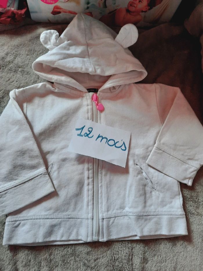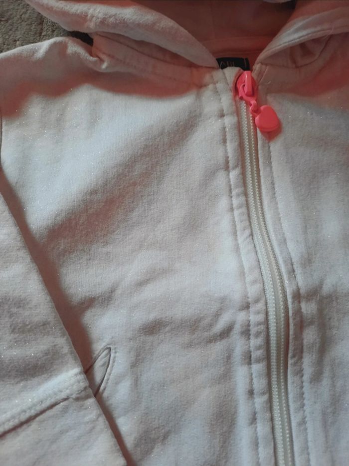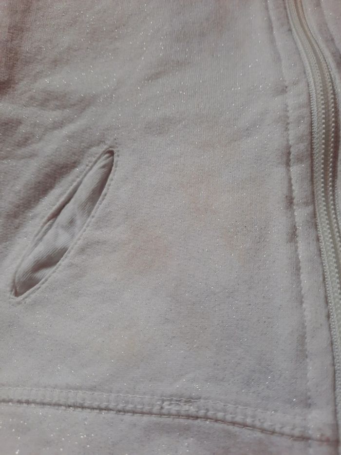 Gilet blanc à paillettes 12mois Porté 1fois et malgré tout une tâche à côté de la poche.. à peine visible à l'œil nu.. voir photo 4