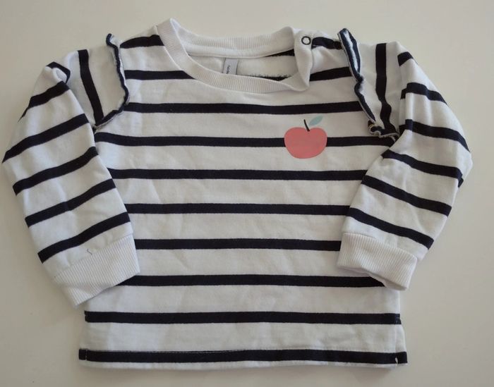 Pull marinière Fashion Private Company Taille 18mois / 81cm Petits volants sur les épaules Petite tâche sur le devant du maillot qui ne se voit pas porté (voir dernière photo) #vetement18moisjustine8059