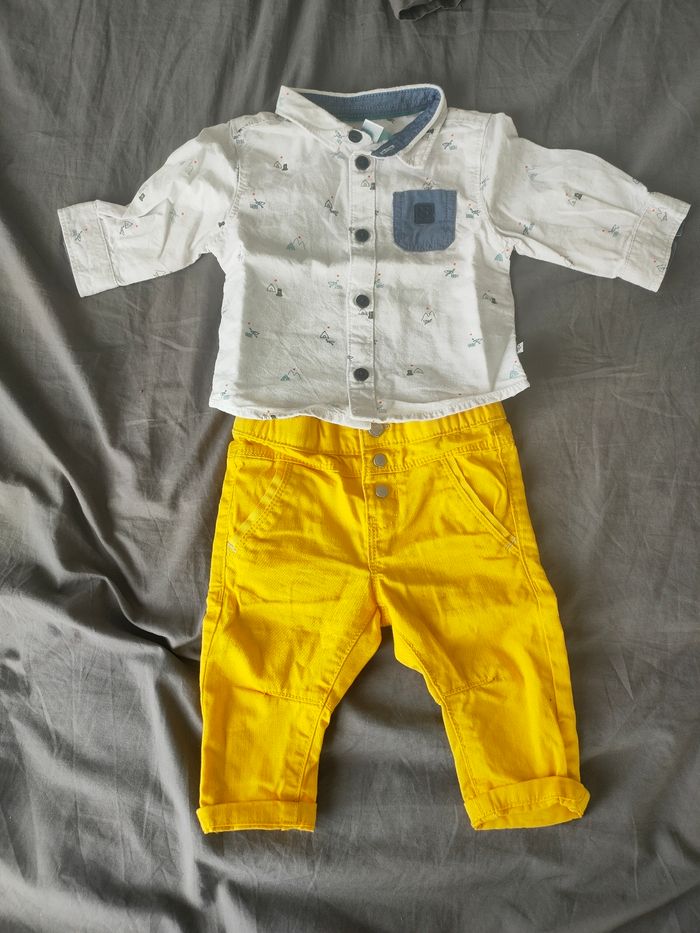 Une chemise et un pantalon de la marque obaibi taille 3mois en très bon état