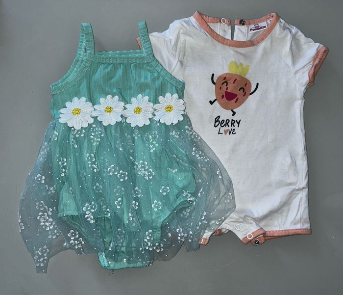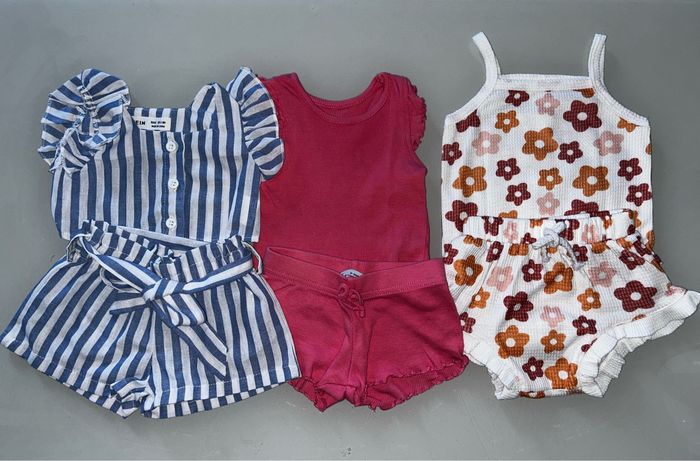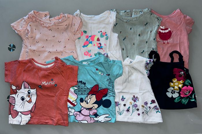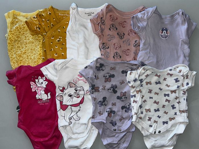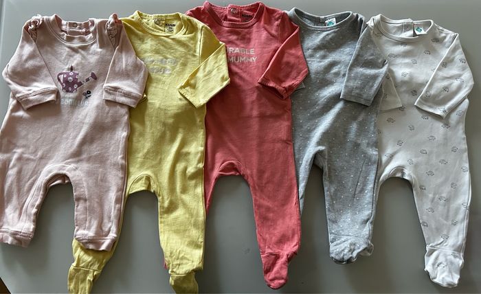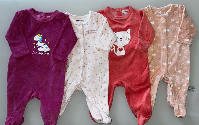 Ce lot bébé fille de taille 3 mois comprend 60 articles : -10 pyjamas (5 en velours et 5 en cotons) -10 leggings -3 shorts -2 Barboteuses -3 ensembles -9 bodies MC -8 t-shirts MC -2 pulls -2 culottes -1 combinaison d’hiver De toutes marques Tout laver et repasser avant envoie.