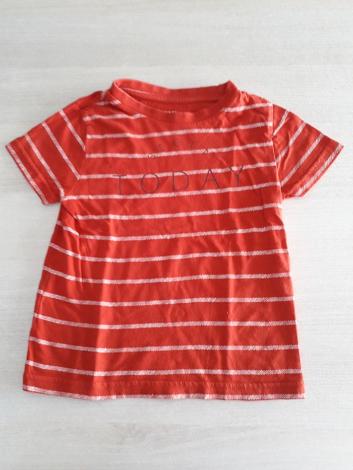 Tee shirt 4 ans rouge rayé blanc avec écriture devant Kiabi 4 ans En bon état