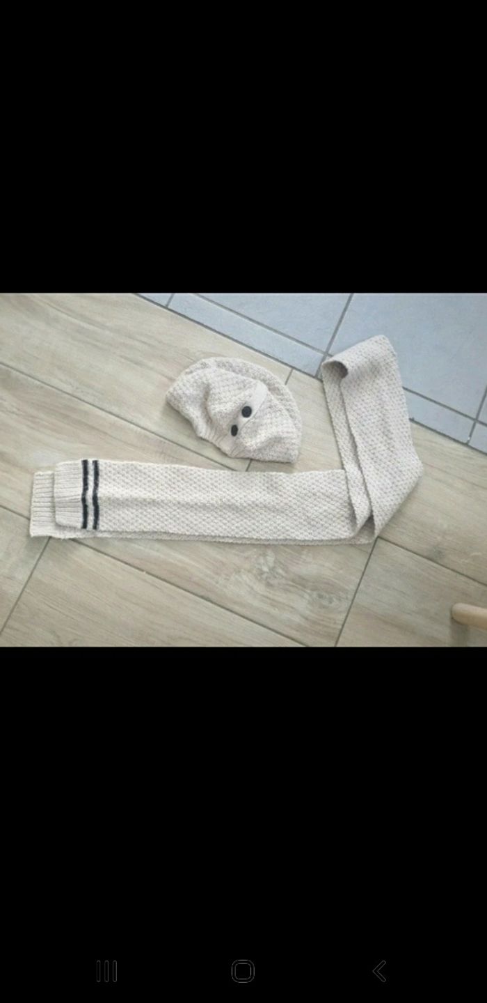 Ensemble bonnet cloche fille plus écharpe et moufles qui sont pas en photo de marque ooxoo Porté reste propre Taille 56 cm