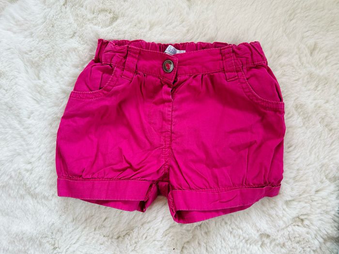 Lot de 2 short : - 1 rose, de la marque « Kitchoun », très bon état - 1 bleu, de la marque « Gémo », bon état mais 2 petits taches très légères (voir dernière photo) 1.20€ les deux