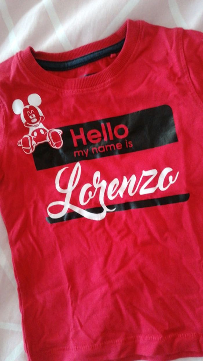 T-shirt flocage Mickey prénom Lorenzo 9-12 mois