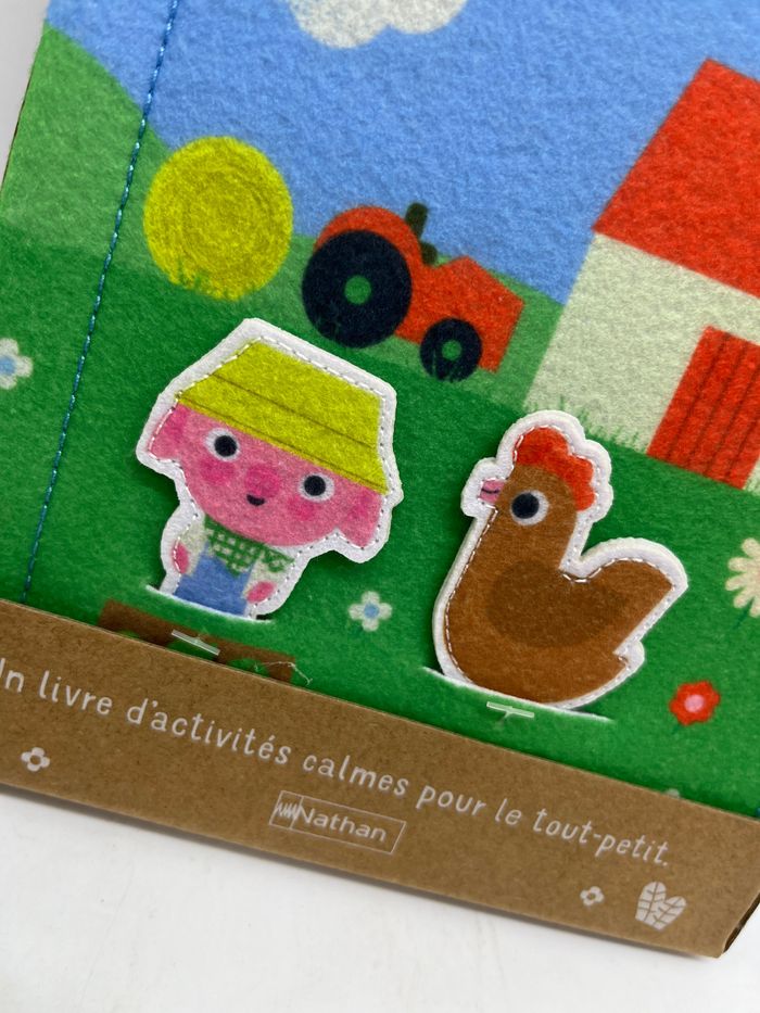 Livre feutrine tissu Quiet Book modèle à la ferme avec ces 2 figurines à déplacer Neuf