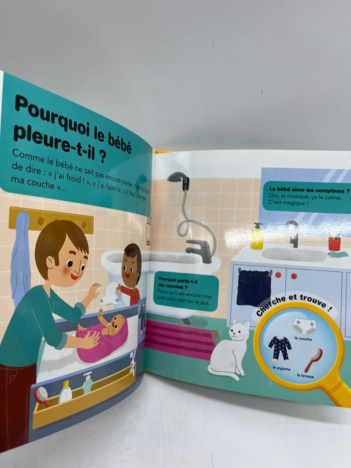 Livre histoire Mes premières questions /réponses avec cherche et trouve thème Bienvenue Bébé à4-7 ans Neuf
