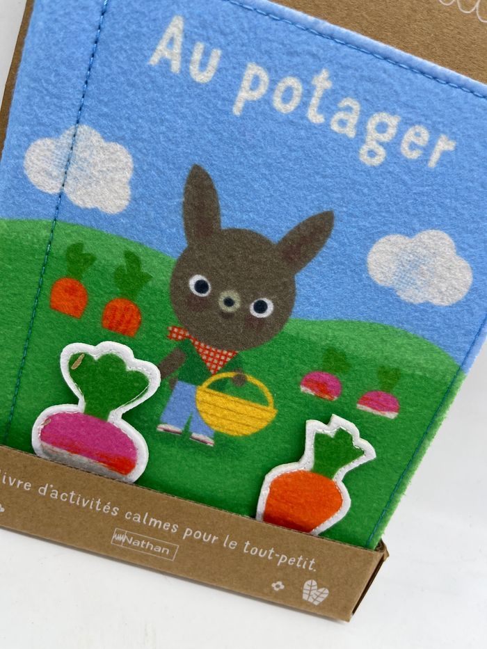 Livre feutrine tissu Quiet Book modèle au potager avec ces 2 figurines à déplacer Neuf