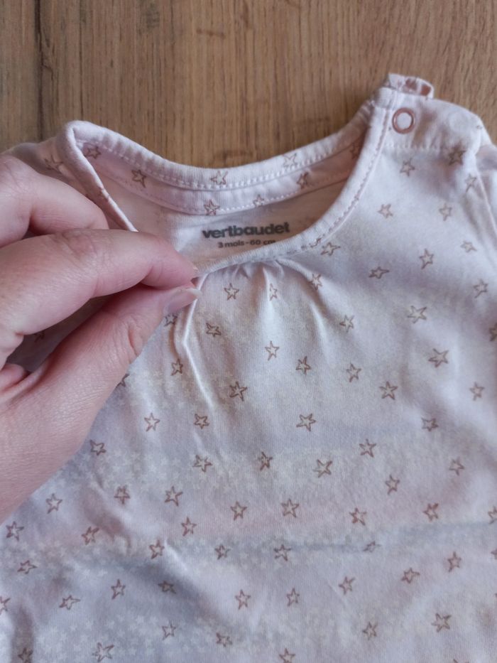 Haut manche longue 3 mois marque vertbaudet, rose à motif étoile