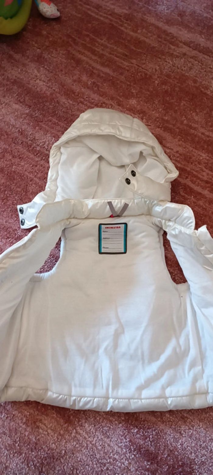 En très bon état Couleur blanc cassé ou blanc perle difficile de définir l'exactitude Capuche détachable Taille 6 mois