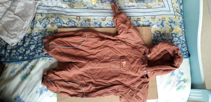Jolie combi pilote marron très peu portée. Doublure 100 % coton. Ouatinage 100 % polyester