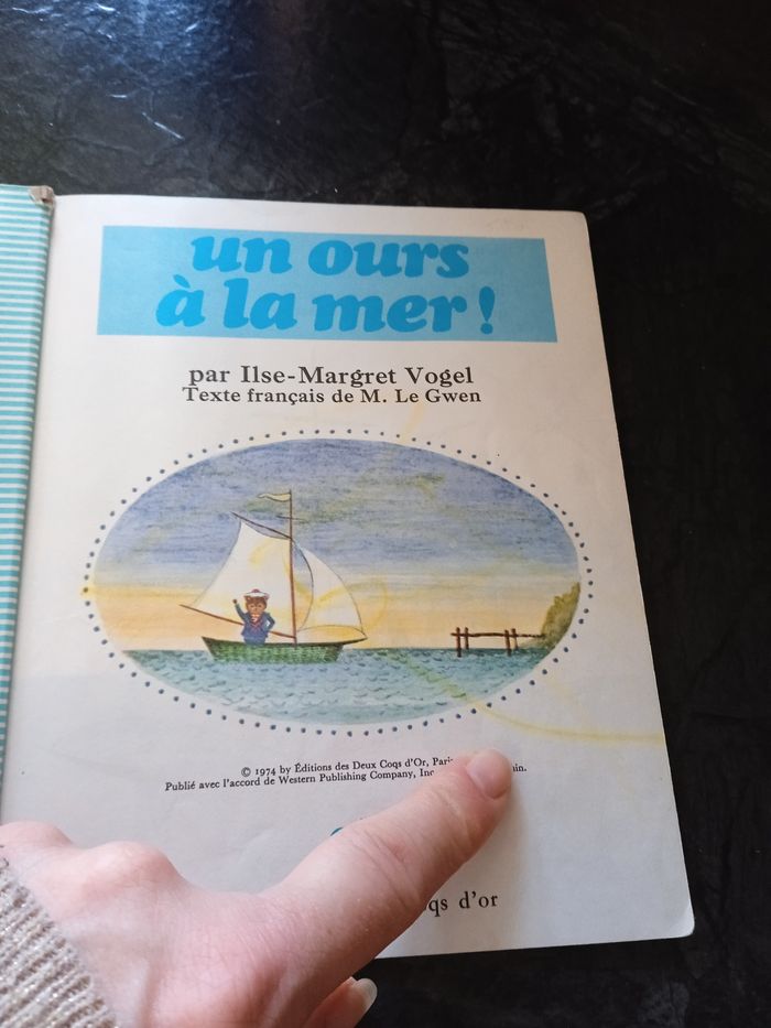 Livre ancien de la collection petit livre d'or. Titre" un ours à la mer". Présente un coup de crayon jaune sur la première page. Présente usure du temps mais reste en très bon état. #livreenfantnade3033