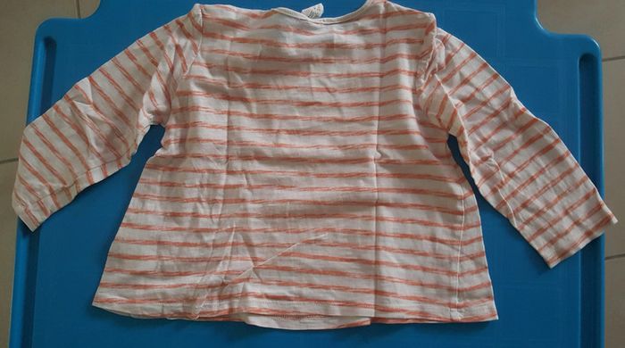 Tee shirt blanc lignes oranges avec un dessin coeur orange Manches longues 18 mois Fermeture par 3 boutons pression à l'épaule Marque H&M 2 euros