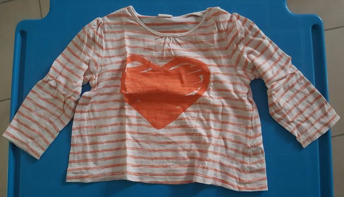 Tee shirt orange et blanc coeur orange 18 mois - photo numéro 1