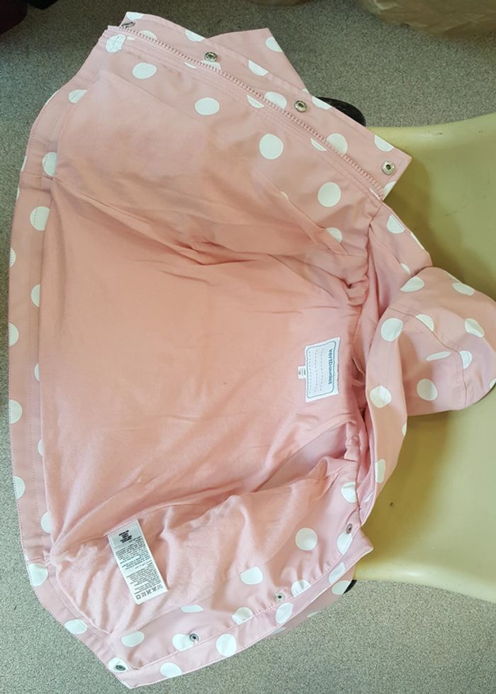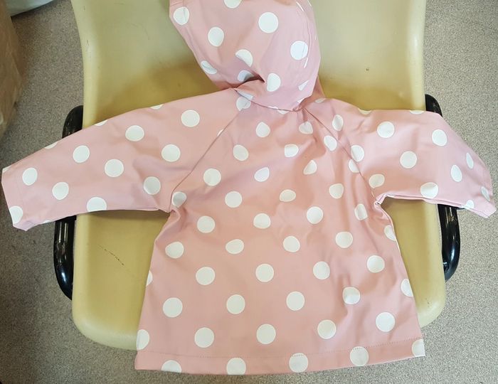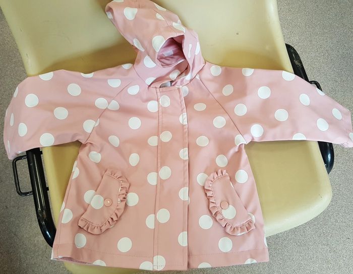 Blouson imperméable rose à pois blancs à capuche Fermeture zippée, cachée par un rabat 2 poches avant