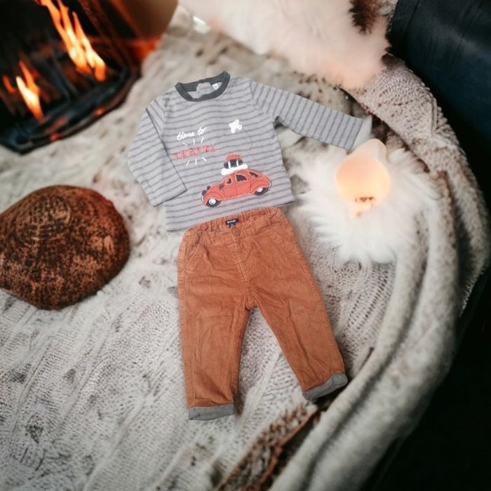 En parfait état Un t-shirt manche longue Un pantalon velours #achille_12mois N'hésitez pas à visiter mon dressing réduction sur lot