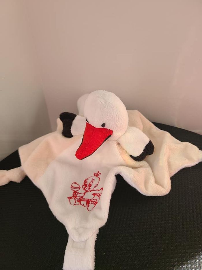 Cigogne Rodadou doudou carré plat beige et blanc bébé 82