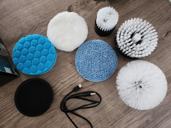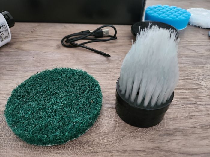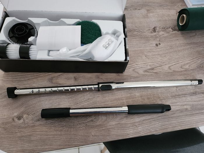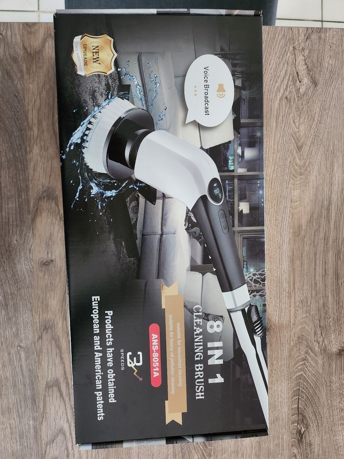 Idéal pour la maison, cuisine, salle de bain, WC. Juste la brosse blanche en pointe et le scratch vert utilisés. En très très bon état avec perche extensible, recharge via un port USB Tout est dans son carton d'origine Plus de questions, n'hésitez pas.