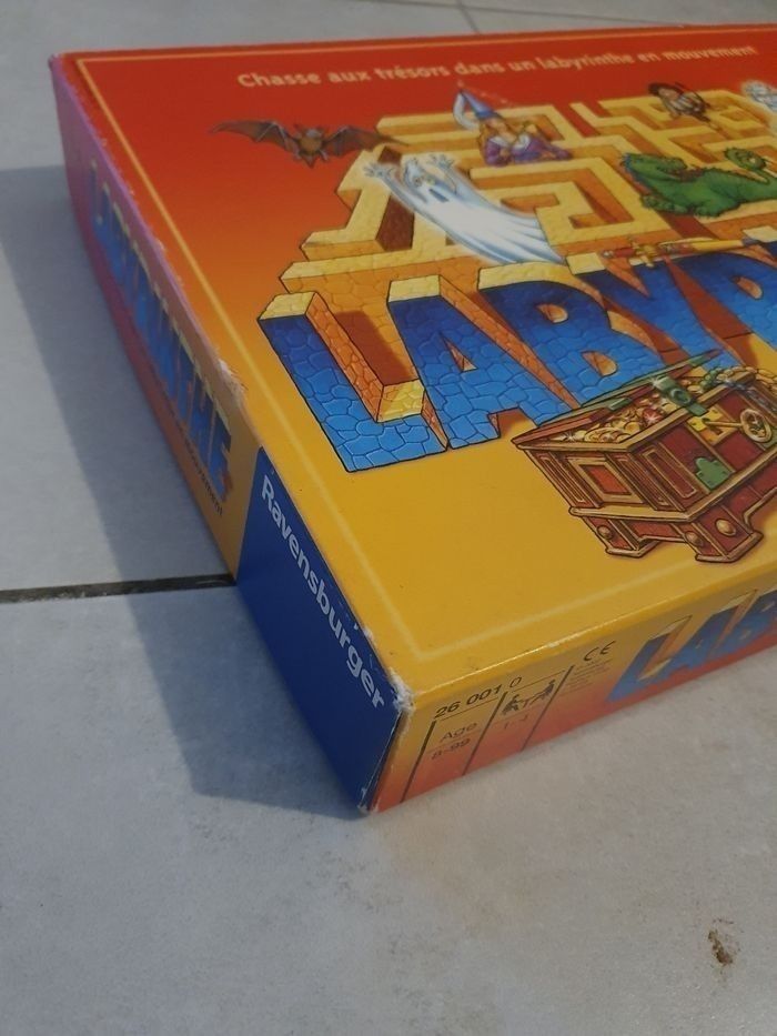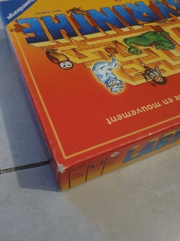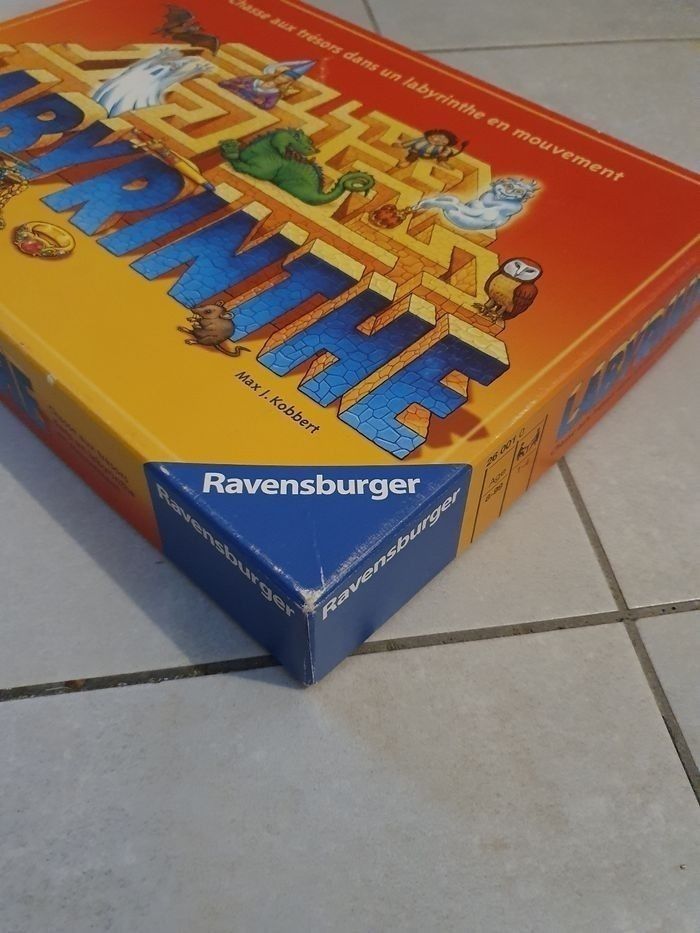 Jeu de société Labyrinth, en très bon état intérieur et complet sauf la règle mais se trouve sur internet. La boîte présente des traces d'usures, notamment derrière avec des déchirures (voir photos). Et certaines cartes peuvent présenter de légères traces d'usures. #labyrinth #jeu #jeux #jeudesociete #plateau #ravensburger