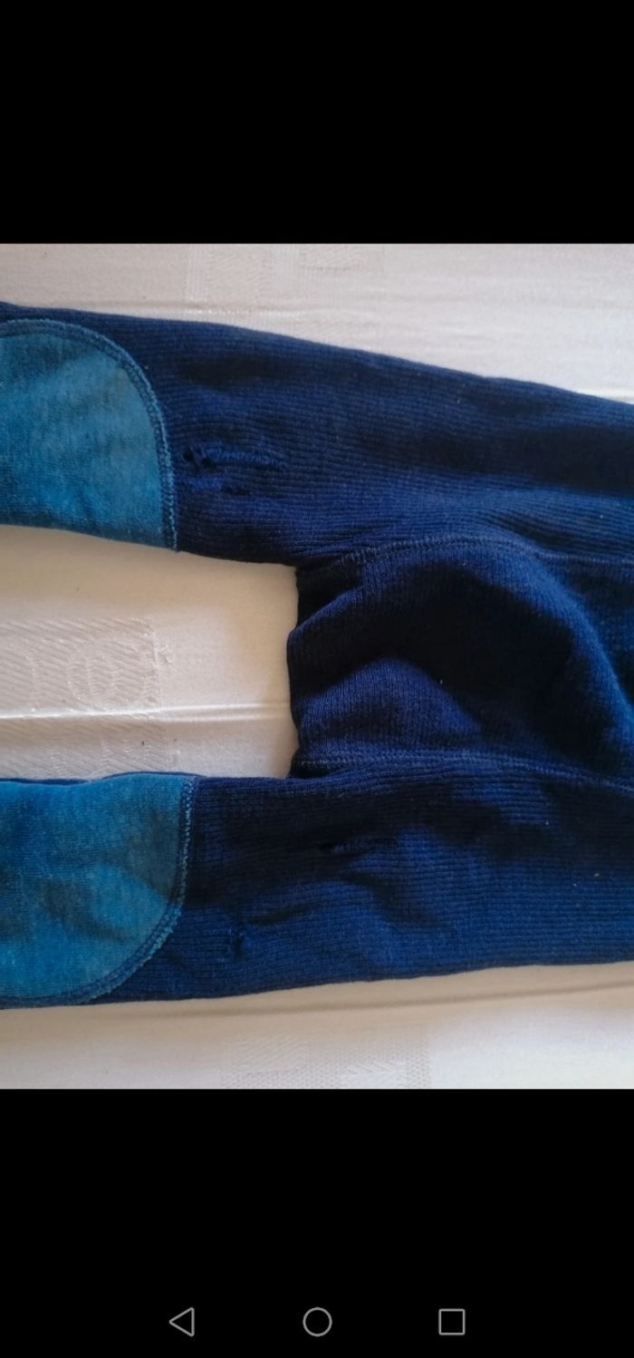 Longuie à genouillères bleu nuit, trous a repriser au dessus des genouillères. + t-shirt gris et t-shirt choco manymonths 30€ le lot