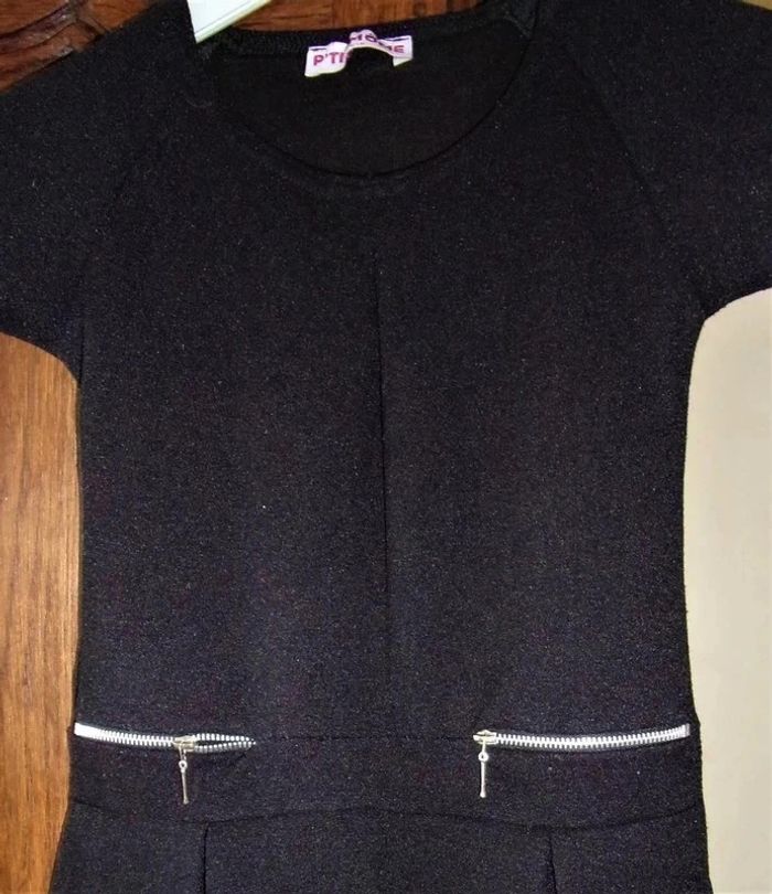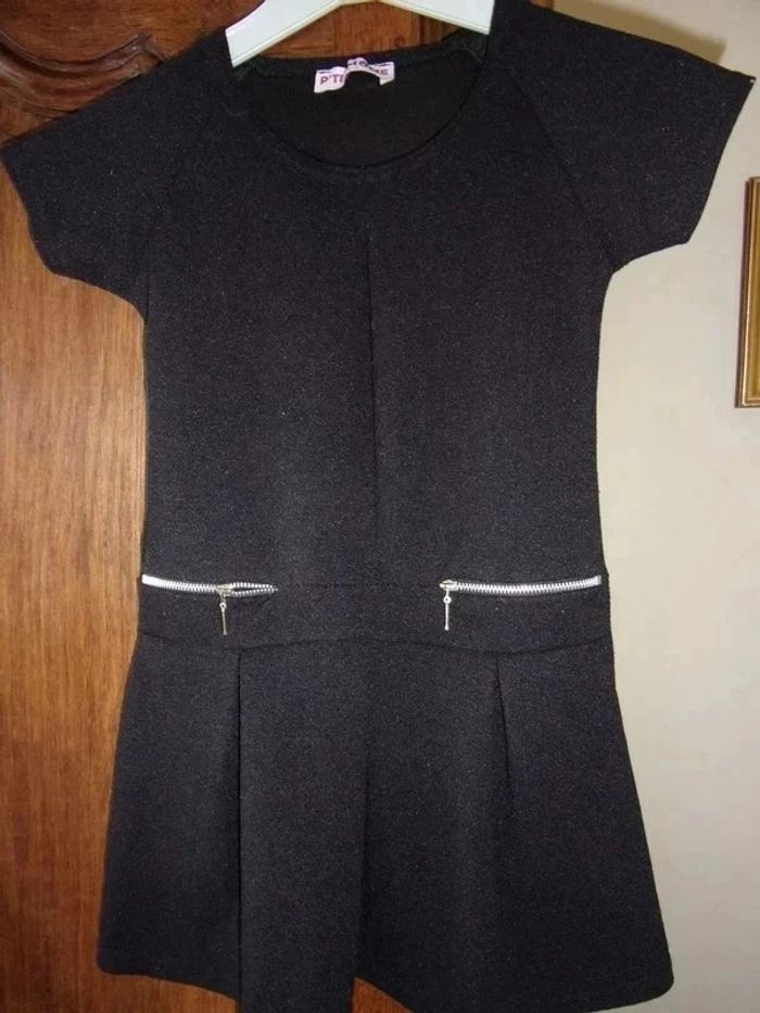 Robe P'tit Môme - 6 ans Couleur noir Manches courtes Belles découpes - très bonne tenue Taille basse - Jupe à plis 2 fermetures éclair factices En excellent état