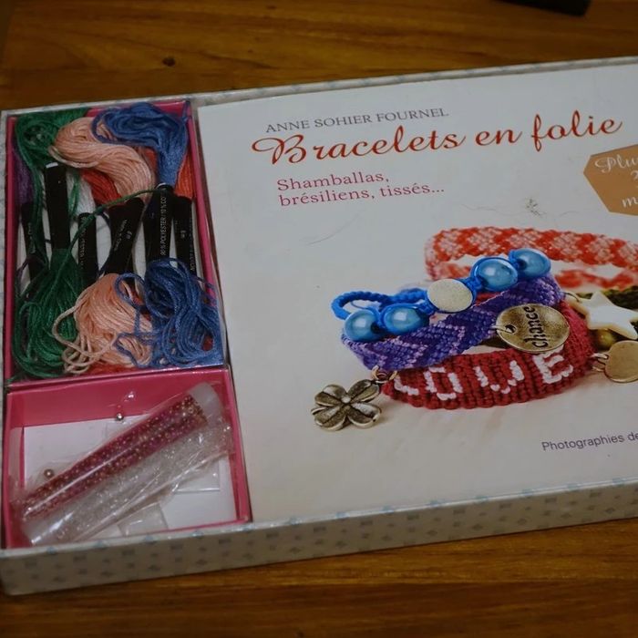 Bracelets en folie 192 pages complet avec : + 8 échevettes de couleur +3 charms +2 tubes de perles de rocaille +3 fermoirs