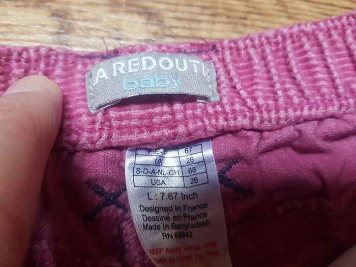 De la marque La Redoute baby. En velours, taille élastique. En très bon état.