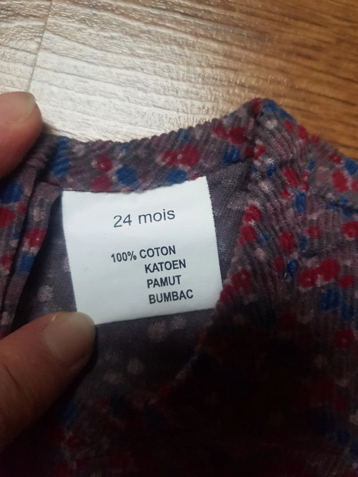 Taille 24 mois En velours à fines raies. Fermeture boutonnée dans le dos. En très bon état.